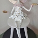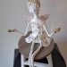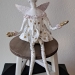 Haar jurkje is geschilderd, de beenmode en het haarstrikje is van rood fluweel.